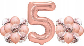 Zestaw RÓŻOWE ZŁOTO na 5 URODZINY 100cm ROSE GOLD
