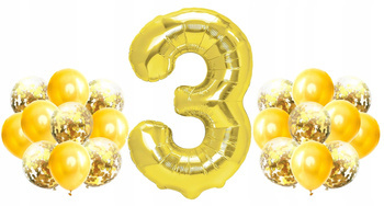 Zestaw ZŁOTY na 3 URODZINY 100cm balony konfetti