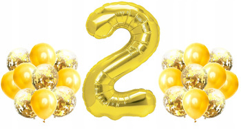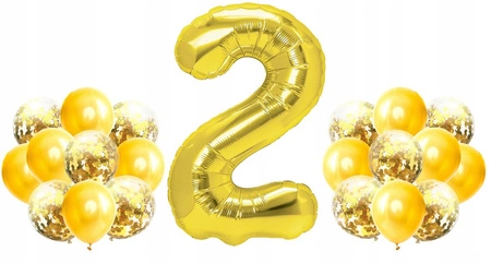 Zestaw ZŁOTY na 2 URODZINY 100cm balony konfetti