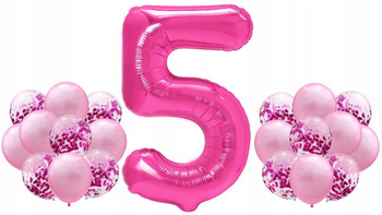 Zestaw RÓŻOWY na 5 URODZINY 100cm balony konfetti