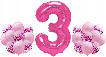 Zestaw RÓŻOWY na 3 URODZINY 100cm balony konfetti