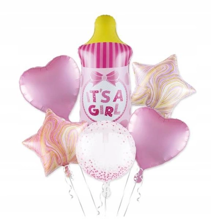 ZESTAW balonów BABY SHOWER dla dziewczynki BUTELKA