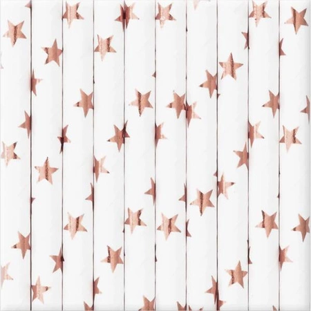 Słomki białe RÓŻOWE ZŁOTO w GWIAZDKI ROSE GOLD 10s
