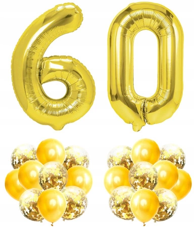 Zestaw ZŁOTY na 60 URODZINY 100cm balony konfetti