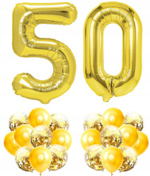 Zestaw ZŁOTY na 50 URODZINY 100cm balony konfetti