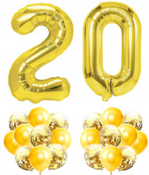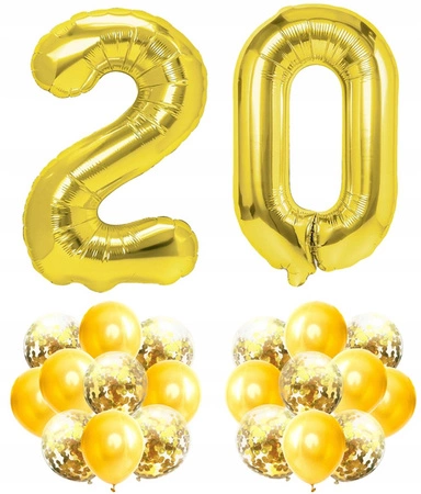 Zestaw ZŁOTY na 20 URODZINY 100cm balony konfetti
