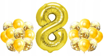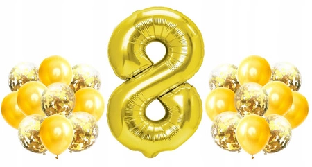 Zestaw ZŁOTY na 8 URODZINY 100cm balony konfetti