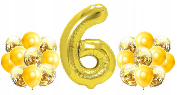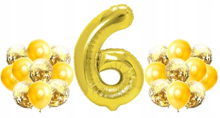 Zestaw ZŁOTY na 6 URODZINY 100cm balony konfetti
