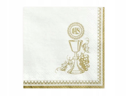 Serwetki białe złoty KIELICH na komunię 20szt 33cm