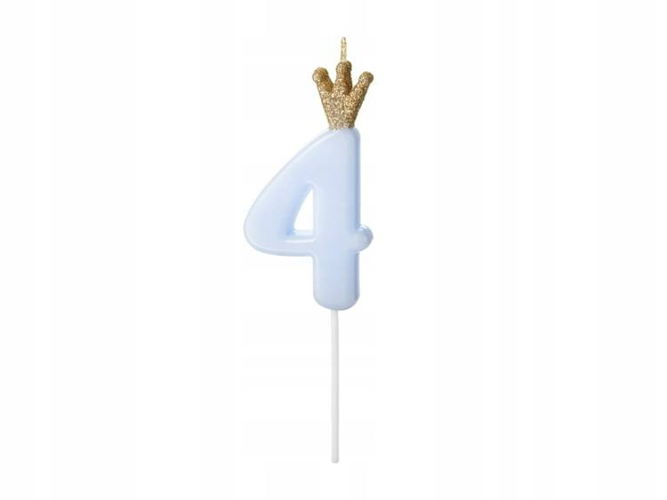 Świeczka urodzinowaCyferka 4 w kolorze jasnoniebieskimNiezbędna na każdym torcie!Idealna dekoracja tortu na urodzinach.Wysokość: około 9,5cmCena dotyczy 1 sztuki