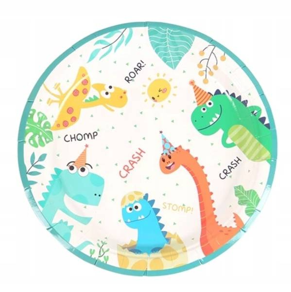 Talerzyki papierowe DINOZAURY 18cm urodzinowe 6szt