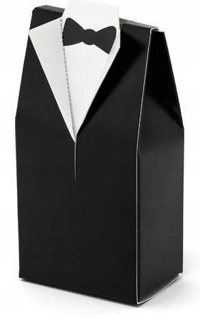 Pudełeczka Pan Młody wykonane z papieru w kolorze czarno-białym.