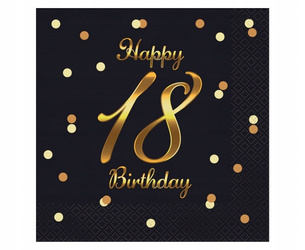 Serwetki Happy 18 Birthday CZARNE na urodziny 20sz