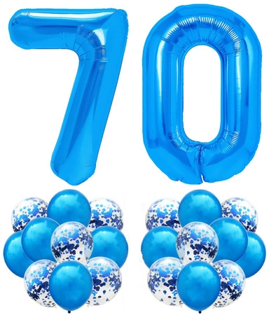 Zestaw CIEMNY NIEBIESKI na 70 URODZINY 100cm balon