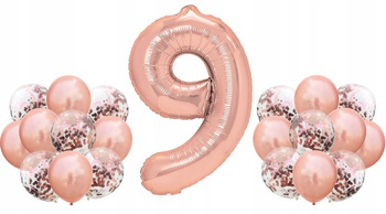 Zestaw RÓŻOWE ZŁOTO na 9 URODZINY 100cm ROSE GOLD