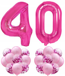 Zestaw RÓŻOWY na 40 URODZINY 100cm balony konfetti