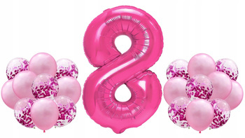 Zestaw RÓŻOWY na 8 URODZINY 100cm balony konfetti