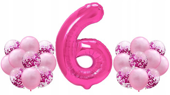 Zestaw RÓŻOWY na 6 URODZINY 100cm balony konfetti