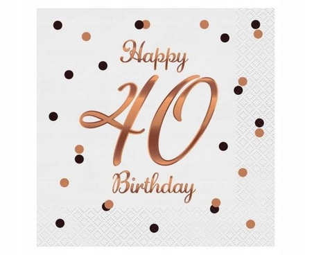 Serwetki Happy 40 Birthday RÓŻOWE ZŁOTO urodziny
