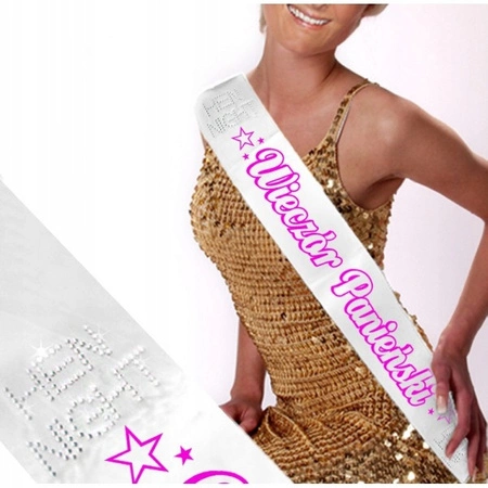 Szarfa BIAŁA napis RÓŻOWY Wieczór Panieński 160cm