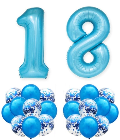 Zestaw NIEBIESKI na 18 URODZINY 100cm DUŻE balony