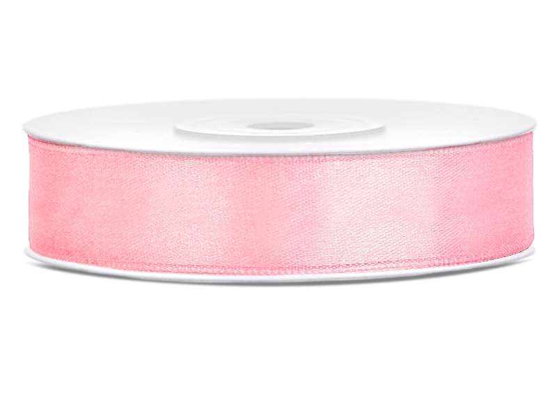 Tasiemka JASNA RÓŻOWA wstążka 12mm satynowa 25m