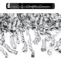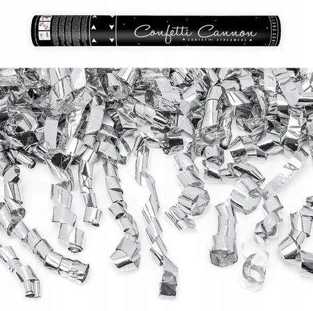 Tuba strzelająca metalicznymi serpentynami w kolorze srebrnym