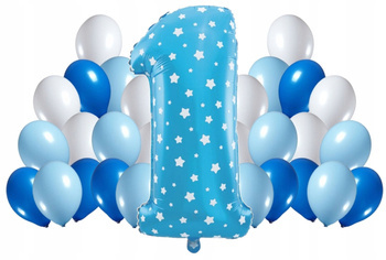 Zestaw balonów NIEBIESKI gwiazdki 1 URODZINY 100cm