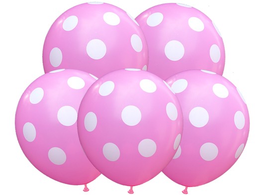 Balony z nadrukiem na Urodziny GROCHY 5szt. różowe
