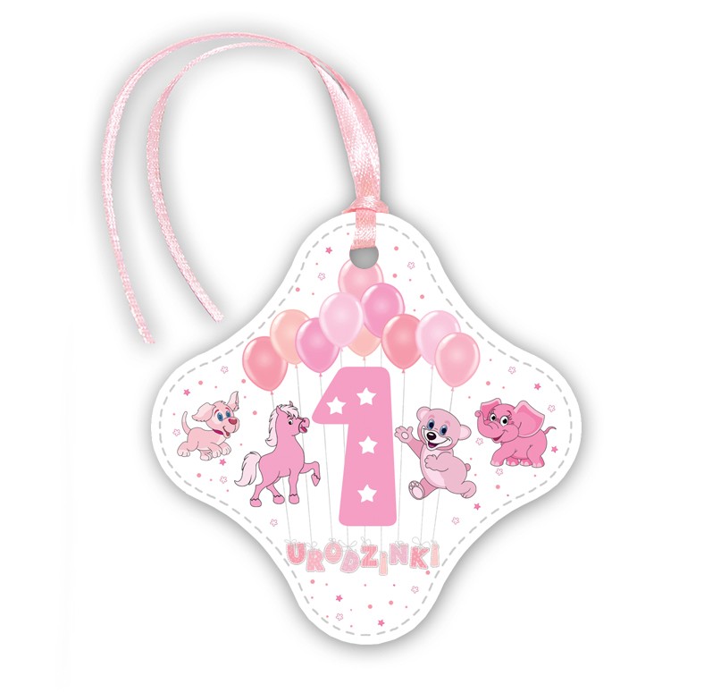 Zawieszki ROCZEK na butelkę urodzinowe RÓŻOWE 20sz